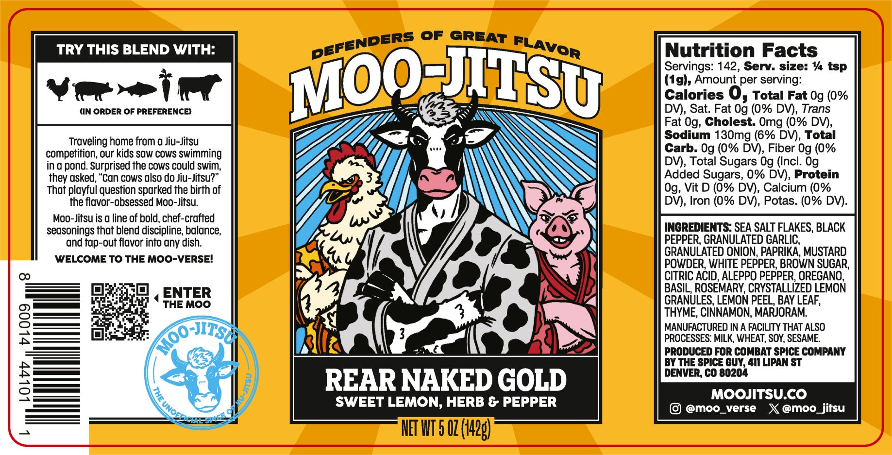 Don't let the name fool you—this blend is all about a masterful flavor submission. Developed by the legendary Professor Cluck, Rear Naked Gold is a versatile, all-purpose rub that locks in a winning combination of bright, zesty, and herbaceous notes. It combines the one-two punch of crystallized lemon and Aleppo pepper with a multi-layered guard of savory herbs like rosemary and basil, making it the ultimate technique for taking any meal from the preliminary rounds to the main event.